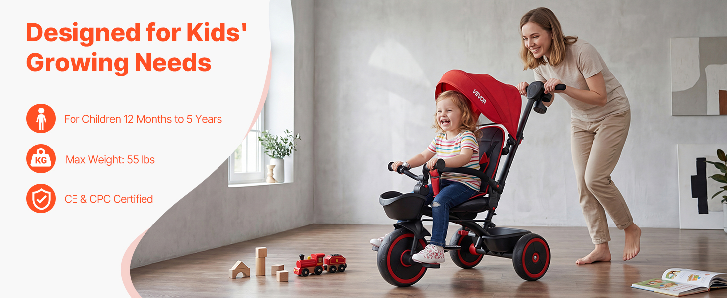 Táto detská trojkolka je určená pre deti vo veku od 12 mesiacov do 5 rokov. Nech už sú to začínajúci chodci alebo sebavedomí malí jazdci, všetci si môžu užiť radosť z jazdy.