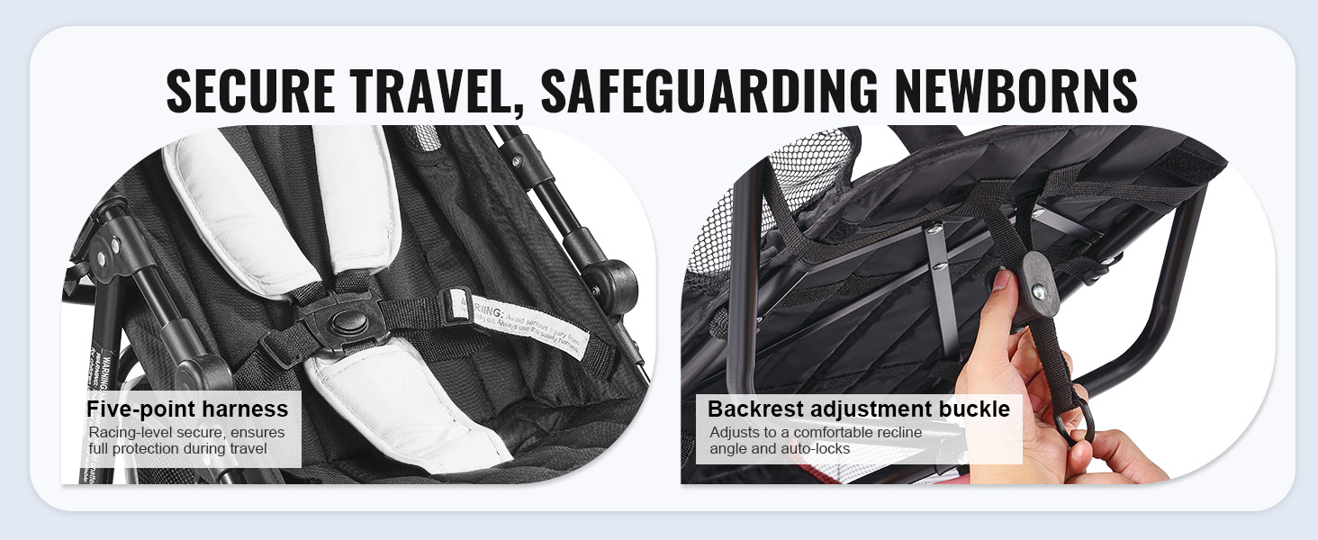 Každý krok na ceste vášho dieťaťa je pre bezpečnosť kľúčový! Tento kočík obsahuje päťbodové bezpečnostné pásy pre ochranu na úrovni pretekov, ktoré zabezpečujú komplexnú bezpečnosť vášho dieťaťa. Spona na nastavenie chrbtovej opierky sa automaticky uzamkne.