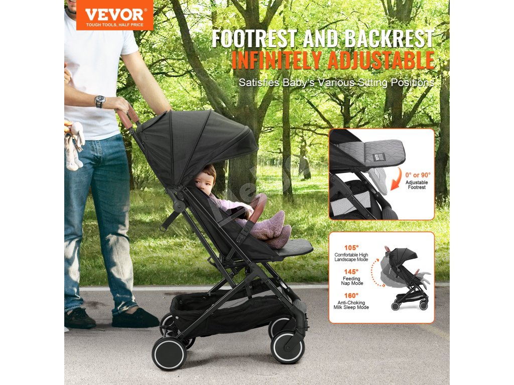 Náš detský kočík poskytuje jednoduché a rýchle nastavenie režimov opierky chrbta a opierky nôh, pričom zabraňuje možnosti ohrozenia v dôsledku náhodného ovládania dieťaťom.