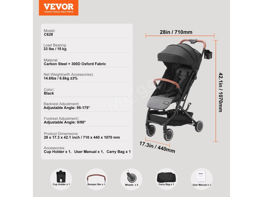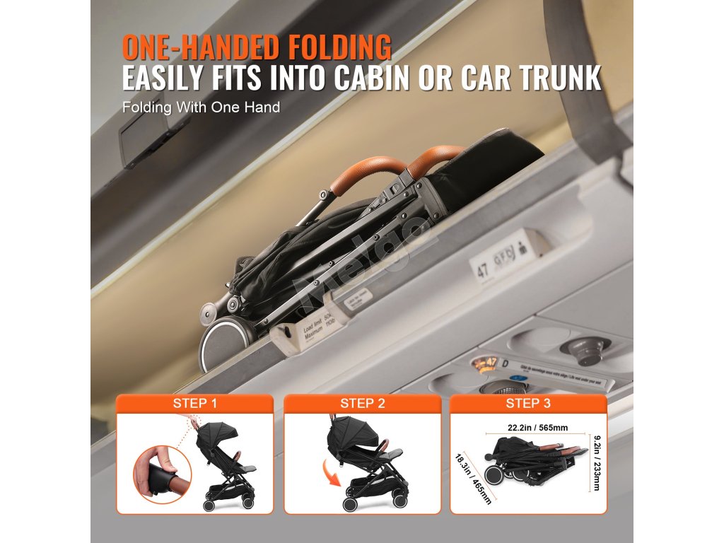 Kompaktný dizajn, ľahko sa zmestí do kufra auta alebo kabíny lietadla, spĺňa požiadavky Disney parku. Skladacie spony na jednoduché odomknutie, ktoré zaisťujú bezpečnosť a spoľahlivosť počas prepravy.