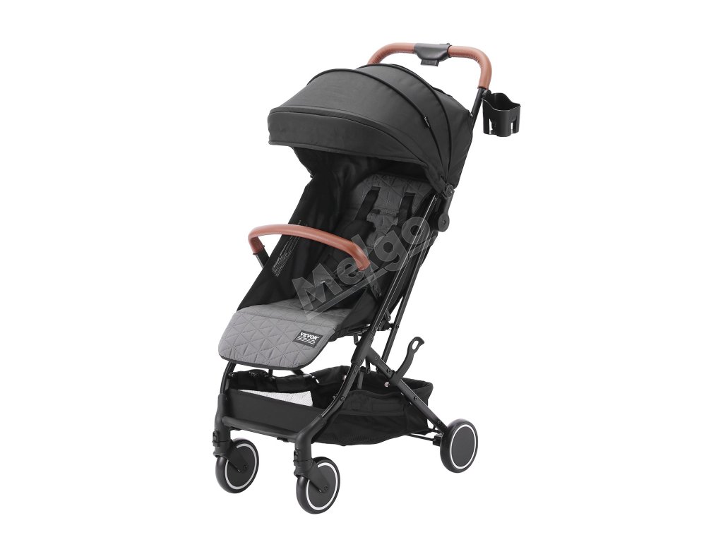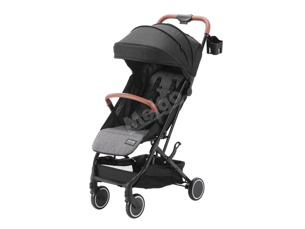Detský kočík s operadlom 95°–175°, opierka 0°/90°, skladací, čierny