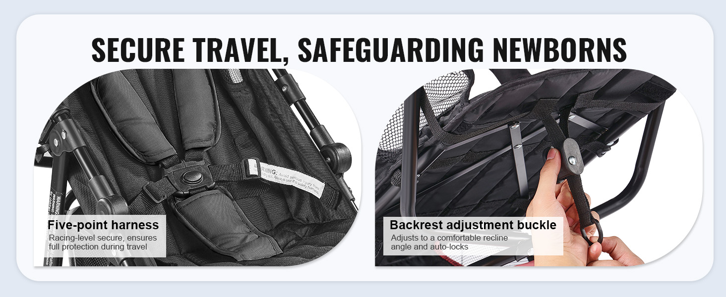 Každý krok na ceste vášho dieťaťa je pre bezpečnosť kľúčový! Tento kočík obsahuje päťbodové bezpečnostné pásy pre ochranu na úrovni pretekov, ktoré zabezpečujú komplexnú bezpečnosť vášho dieťaťa. Spona na nastavenie chrbtovej opierky sa automaticky uzamkne.