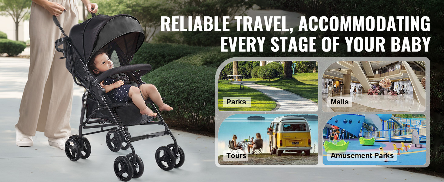 Tento prenosný kočík je skvelým spoločníkom pre rodičov na cestách. Je ľahký a skladný, s pevným rámom poskytujúcim bezpečnú ochranu pre vaše dieťa. Pneumatiky EVA pohlcujúce nárazy sú vhodné do rôznych terénov. Cestovanie s vaším dieťaťom je tak jednoduché a bezpečné.
