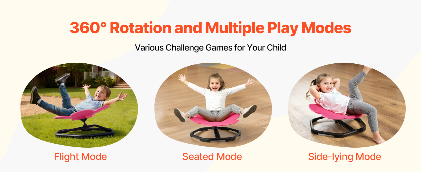 Vďaka 360° otáčaniu a viacerým možnostiam hry môžu deti sedieť, ležať, otáčať sa na senzorickej otočnej stoličke a vytvárať si vlastné hry. Rodičia sa tiež môžu zapojiť do zábavnej interaktívnej hry, čo z nej robí skvelú rodinnú hračku.
