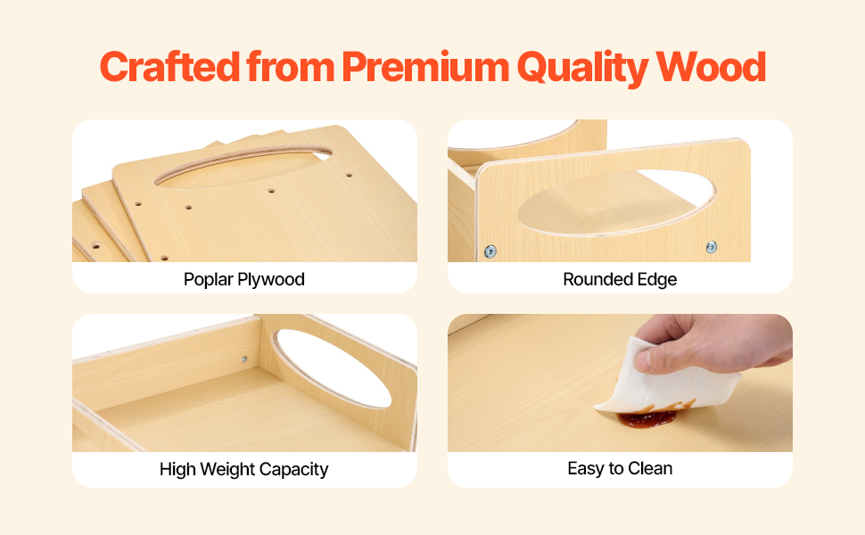 Tento nábytok Montessori je vyrobený z odolnej preglejky a má zaoblené rohy, ktoré znižujú riziko poranenia. Jeho silná nosnosť a ľahko umývateľný povrch zaručujú pohodlie, bezpečnosť a stabilitu pre vaše dieťa.