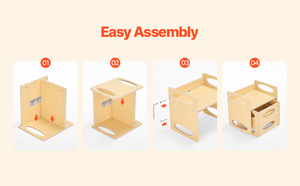 Naša súprava stola a stoličky Montessori na odstavenie dieťaťa zjednodušuje proces montáže tým, že odstraňuje zložité kroky. Stačí postupovať podľa jednoduchých pokynov a budete ju mať zostavenú rýchlo a bez problémov.