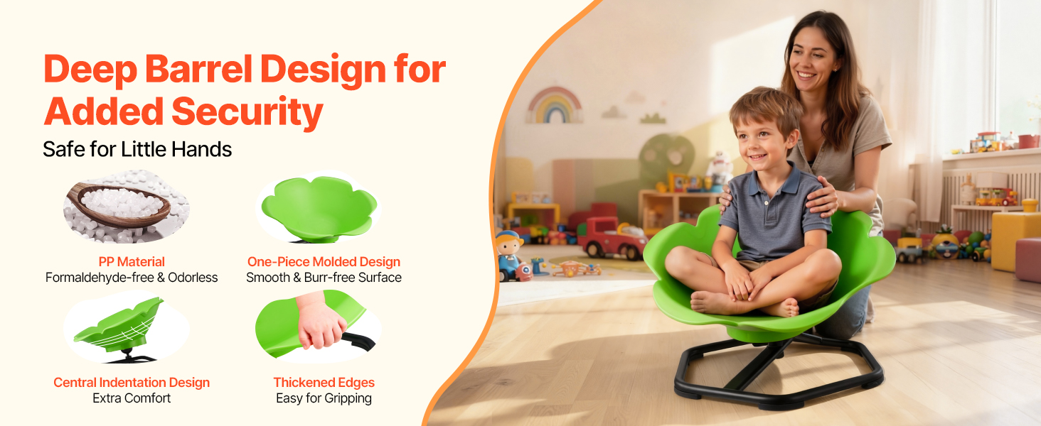 Táto detská otočná stolička stimuluje vestibulárny systém prostredníctvom otáčania, pomáha deťom posilňovať úchop a svaly jadra, zlepšuje koordináciu, rovnováhu a rozvoj mozgu.