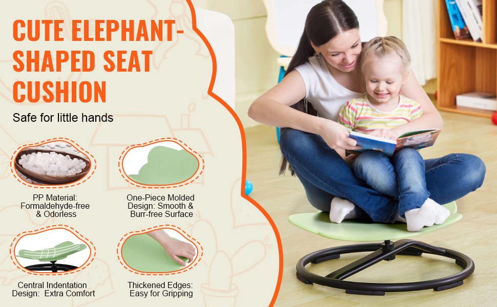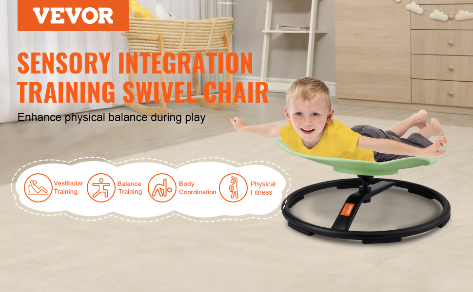 Táto 360° otočná stolička zapája vestibulárny systém detí, zlepšuje koordináciu a rovnováhu. Je vybavená robustnou 20,5-palcovou kovovou základňou, unesie až 220 kg a má polstrované sedadlo pre väčšie pohodlie. Protišmykový dizajn a hladké hrany zaisťujú bezpečnosť. Ľahko sa montuje, je ideálna na domáce použitie.