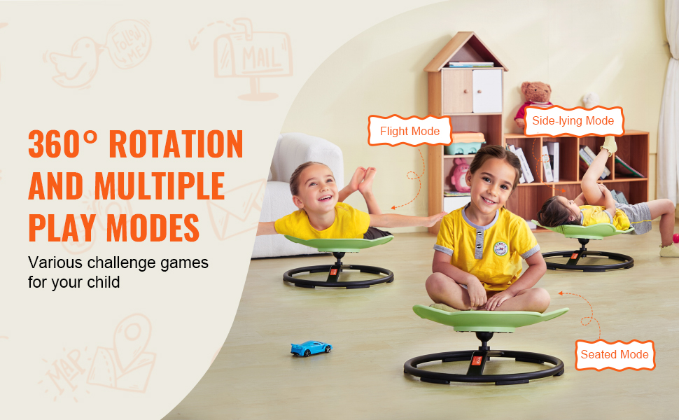 Vďaka 360° otáčaniu a viacerým možnostiam hry môžu deti sedieť, ležať, otáčať sa na senzorickej otáčacej stoličke a vytvárať si vlastné hry. Rodičia sa tiež môžu zapojiť do zábavnej interaktívnej hry, čo z nej robí skvelú rodinnú hračku.