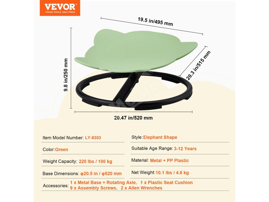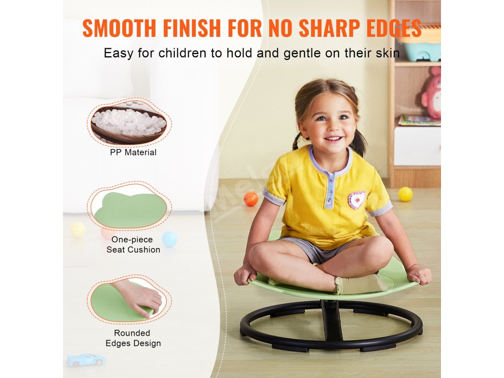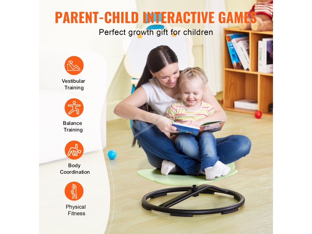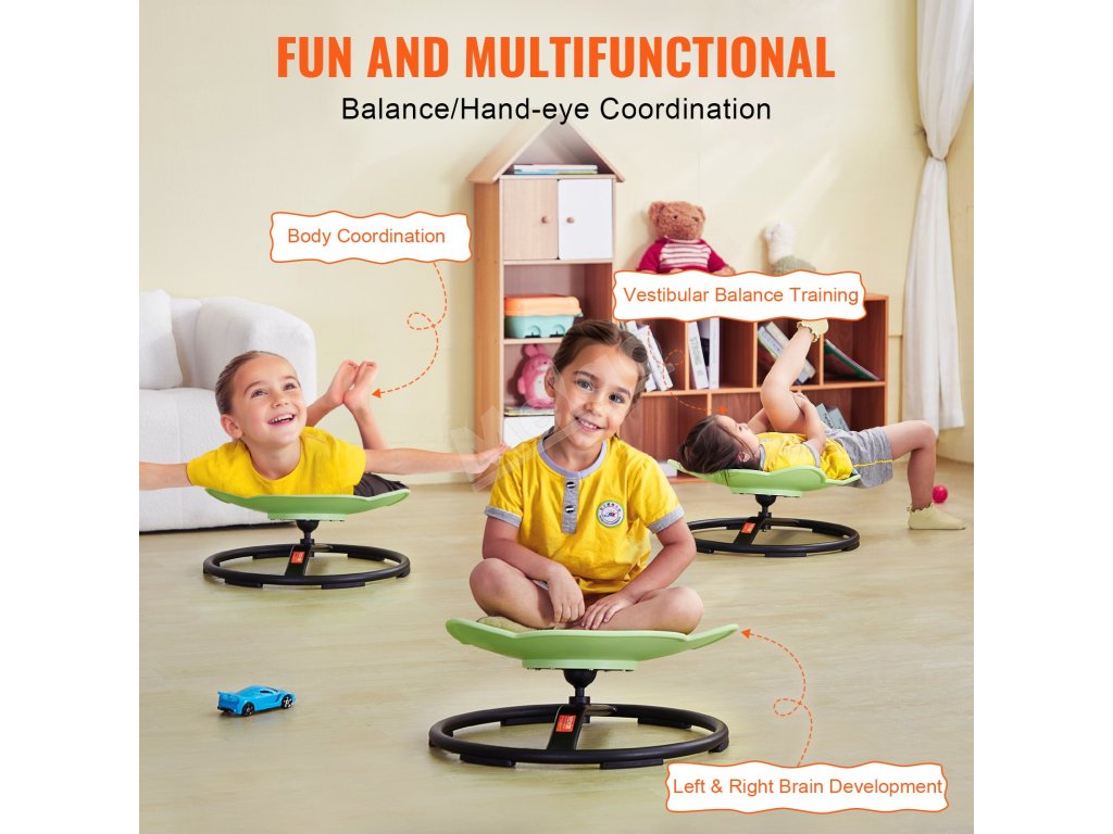 Táto 360° otočná stolička zapája vestibulárny systém detí, zlepšuje koordináciu a rovnováhu. Je vybavená robustnou 20,5-palcovou kovovou základňou, unesie až 220 kg a má polstrované sedadlo pre väčšie pohodlie. Protišmykový dizajn a hladké hrany zaisťujú bezpečnosť. Ľahko sa montuje, je ideálna na domáce použitie.