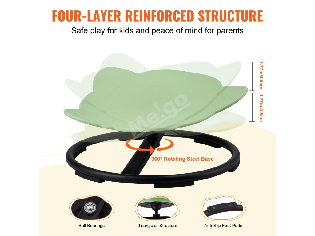 Detská rotujúca stolička s rozšírenou 20,5-palcovou kovovou základňou unesie až 220 kg. Jej trojuholníková konštrukcia s guličkovými ložiskami zabezpečuje plynulé otáčanie a protišmykový dizajn zabraňuje posúvaniu počas hry.