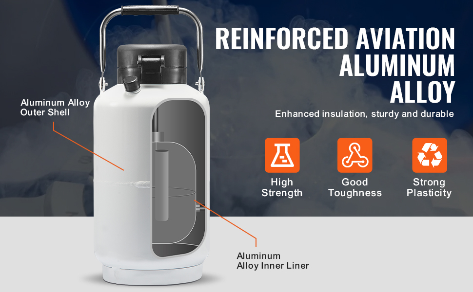 Vďaka špičkovému materiálu z hliníkovej zliatiny je kryogénna nádrž ľahká a prenosná a zároveň vykazuje vynikajúcu odolnosť proti oxidácii a korózii, je vhodná do rôznych náročných prostredí, čím vám zaručuje pokoj počas používania.