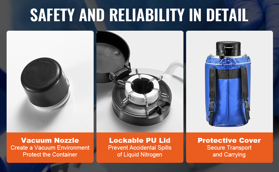 Vďaka vákuovej izolačnej konštrukcii a ochrannému krytu naša kryogénna nádoba zvyšuje ochranu a uľahčuje pohodlný pohyb a prepravu. Uzamykateľné veko zabraňuje náhodnému rozliatiu kvapalného dusíka, čím zabezpečuje bezpečné používanie.