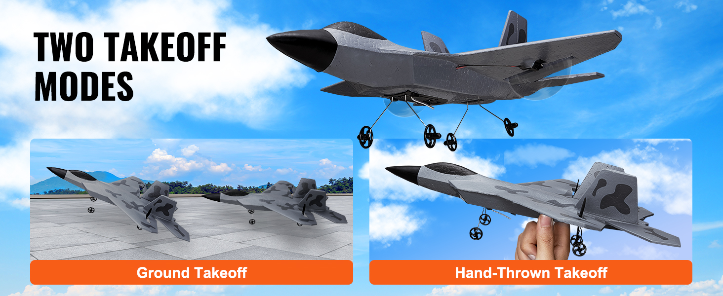 Ľahko zvládnite vzlety. Stačí uchopiť diaľkové ovládanie jednou rukou, pridať plyn a vypustiť lietadlo na diaľkové ovládanie priamo vpred. Alebo ho položte na hladký povrch, pridajte plyn na 10-metrový plachtenie a sledujte, ako sa vznáša.
