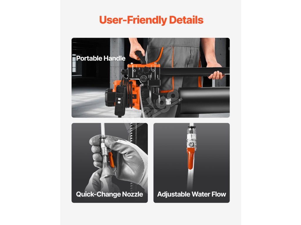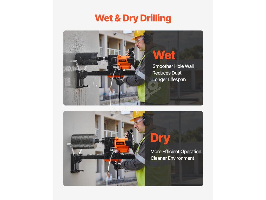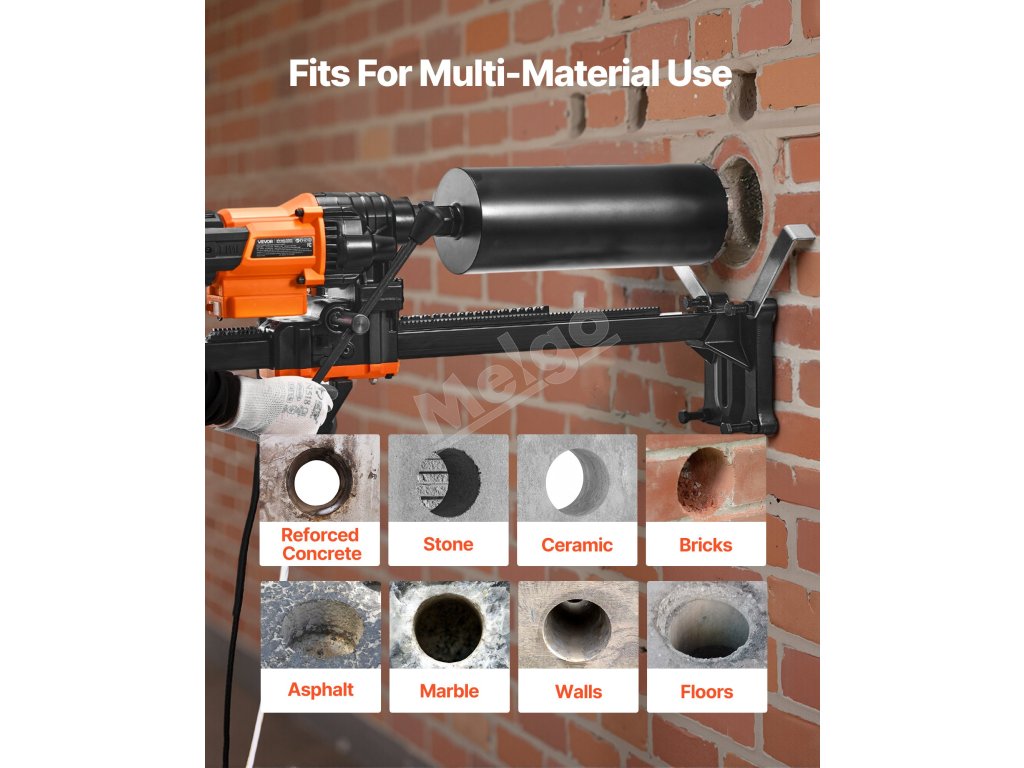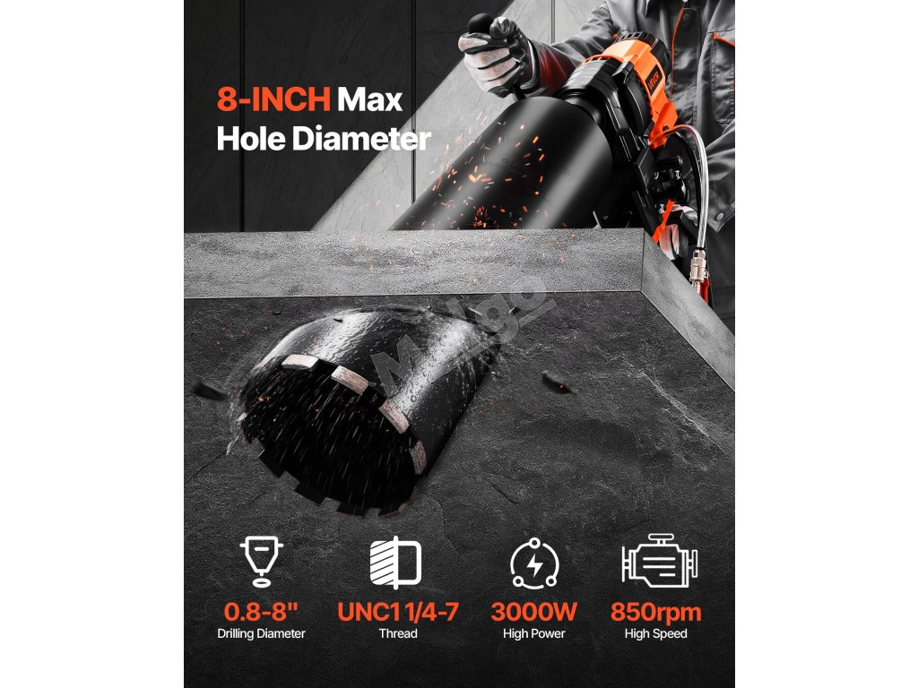 Táto jadrová vŕtačka má výkonný 3000W motor, ktorý dosahuje až 850 otáčok za minútu na rýchle a efektívne vŕtanie. Vďaka maximálnemu priemeru vŕtania 8 palcov (200 mm) je pripravená ľahko zvládnuť rozsiahle práce.