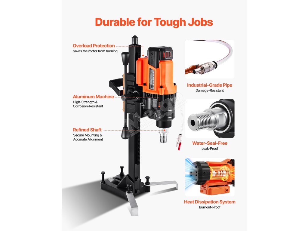 Pracujte s istotou. Diamantová jadrová vŕtačka sa pri preťažení automaticky vypne, aby nedošlo k vyhoreniu motora, čím udrží vaše zariadenie v bezpečí a s dlhou životnosťou.