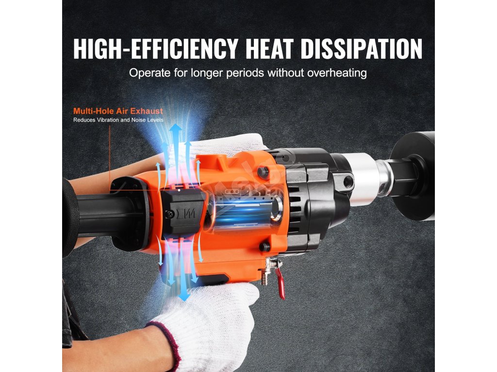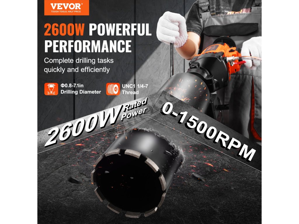 Motor jadrovej vŕtačky s výkonom 2600 W poskytuje dostatočný výkon na prácu s náročnými materiálmi, vďaka čomu je proces vŕtania rýchlejší a stabilnejší. Nastaviteľné otáčky umožňujú jemné doladenie rýchlosti podľa rôznych materiálov a požiadaviek projektu, čím sa zabezpečí presná kontrola.