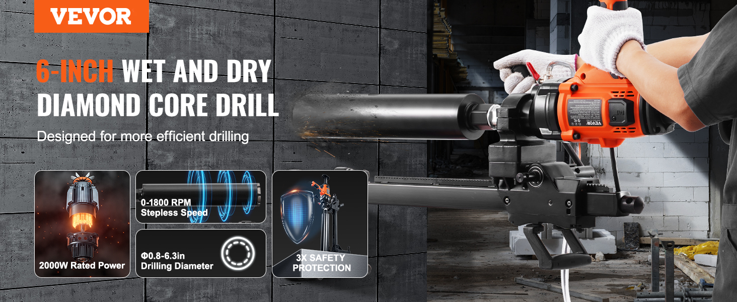 Motor jadrovej vŕtačky s výkonom 2000 W poskytuje dostatočný výkon na prácu s náročnými materiálmi, vďaka čomu je proces vŕtania rýchlejší a stabilnejší. Nastaviteľné otáčky umožňujú jemné doladenie rýchlosti podľa rôznych materiálov a požiadaviek projektu, čím sa zabezpečí presná kontrola.