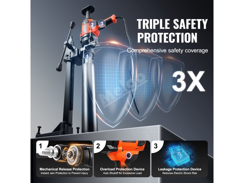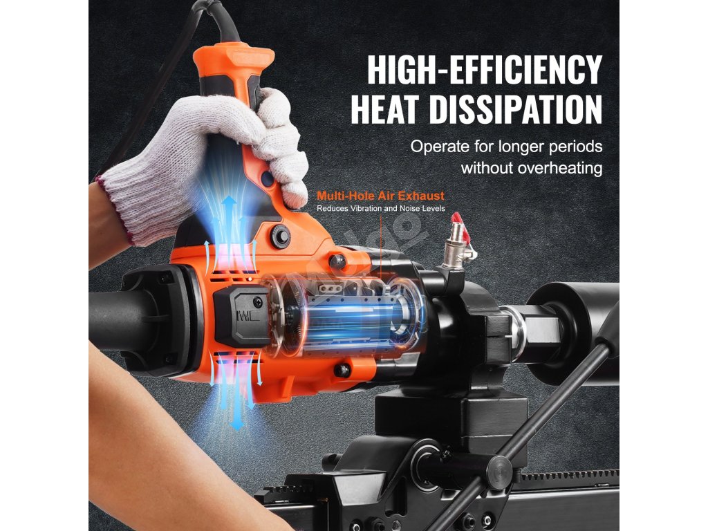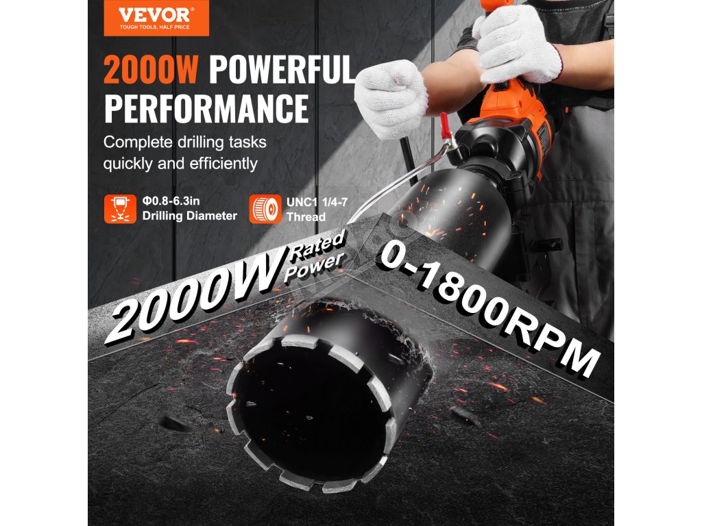 Motor jadrovej vŕtačky s výkonom 2000 W poskytuje dostatočný výkon na prácu s náročnými materiálmi, vďaka čomu je proces vŕtania rýchlejší a stabilnejší. Nastaviteľné otáčky umožňujú jemné doladenie rýchlosti podľa rôznych materiálov a požiadaviek projektu, čím sa zabezpečí presná kontrola.