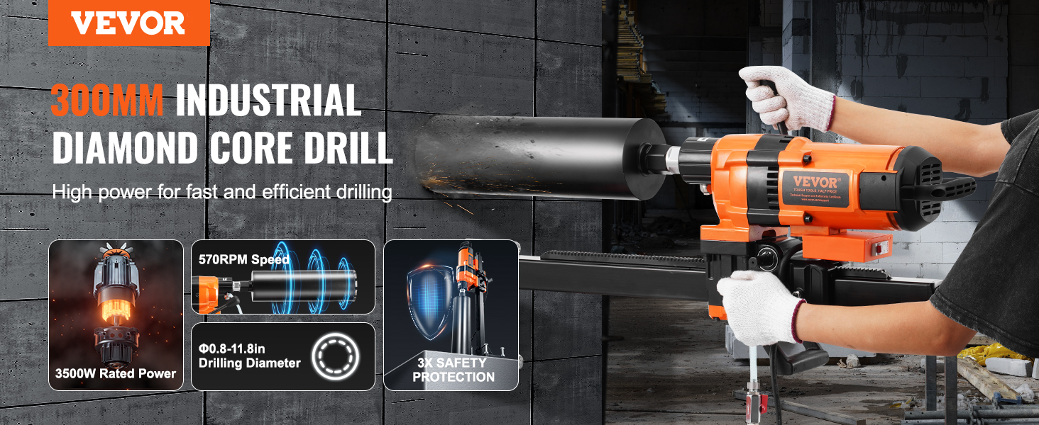 Táto jadrová vŕtačka je vybavená robustným 3500W motorom a poskytuje bezkonkurenčný výkon. Či už vŕtate do betónu, tehlových stien alebo kameňa, výkonný motor zaručuje rýchle a stabilné vŕtanie.