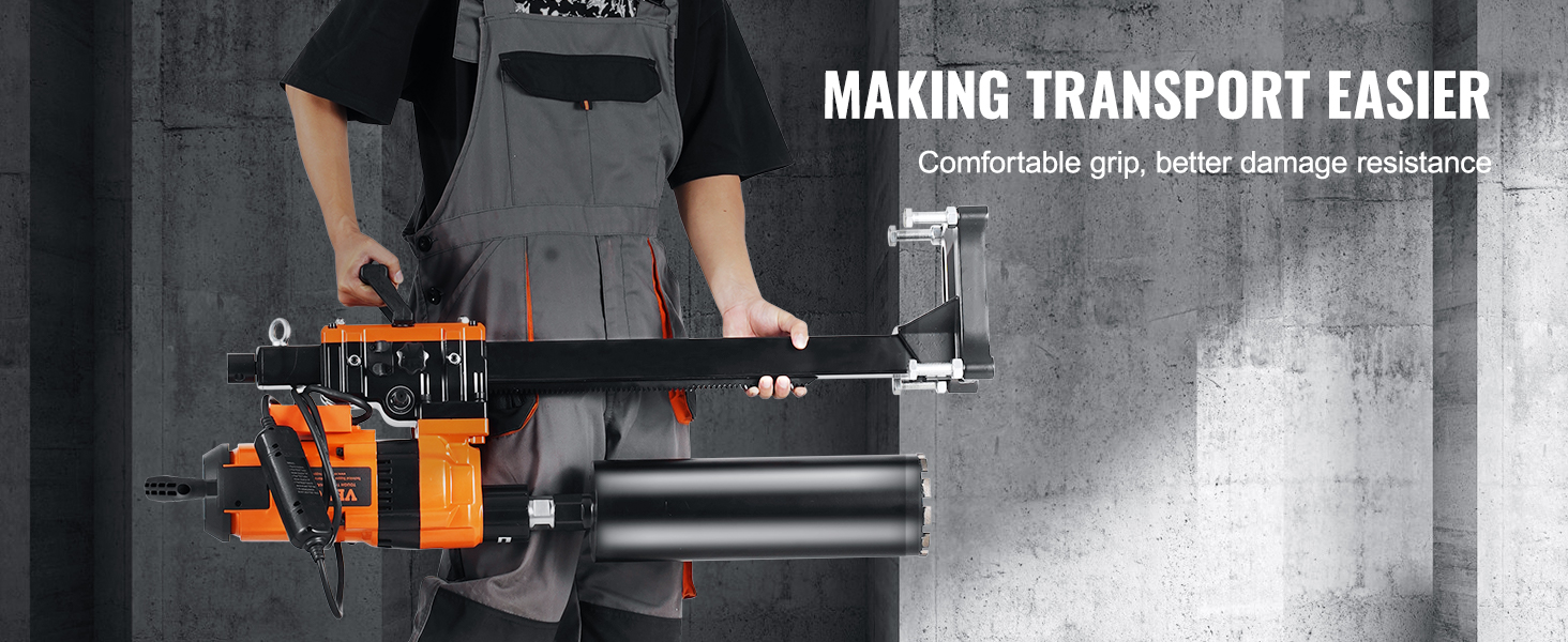 Ergonomická konštrukcia rukoväte uľahčuje používanie na staveniskách a zároveň zabezpečuje bezpečnosť a stabilitu jadrovej vŕtačky počas prepravy a skladovania. Účinne zabraňuje poškodeniu v dôsledku nárazov počas prepravy.