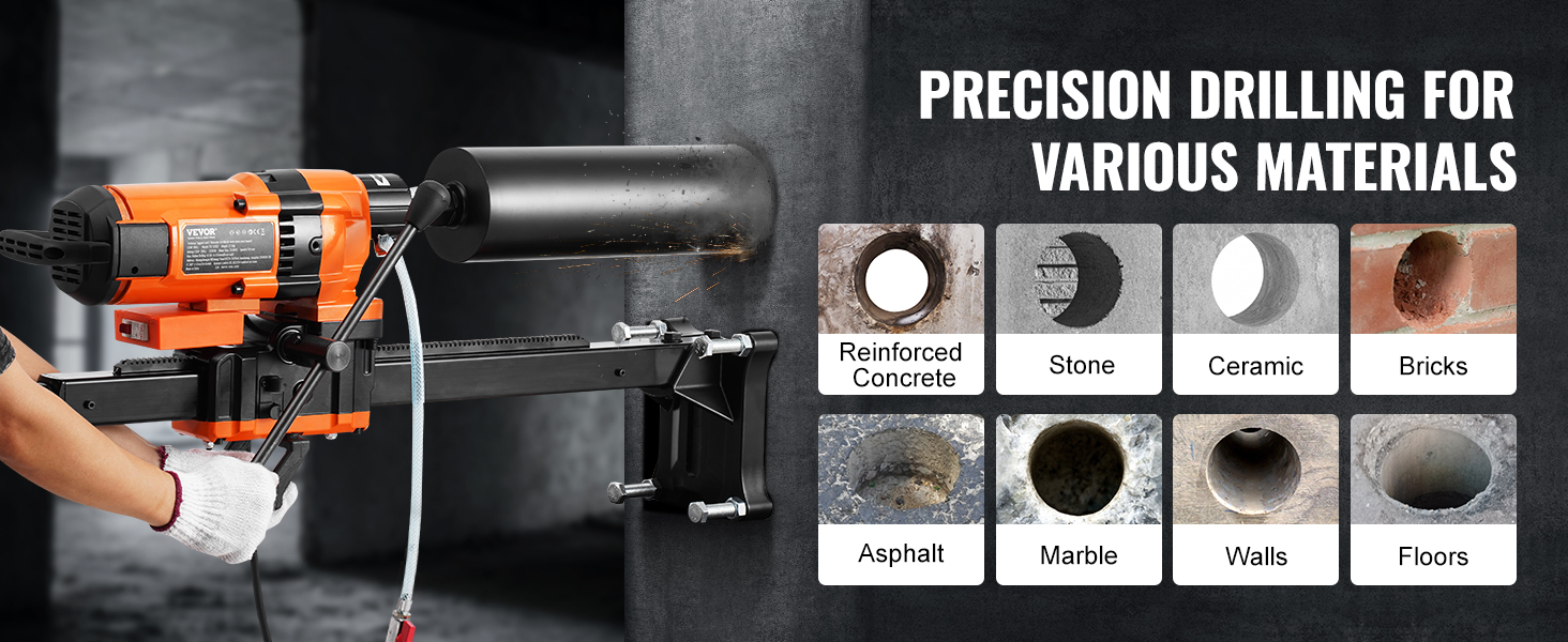 Naša jadrová vŕtačka dokáže efektívne prerezať rôzne materiály, ako sú železobetón, kameň, asfalt, mramor, keramika, steny, podlahy a tehly, čím spĺňa potreby rôznych stavebných projektov.