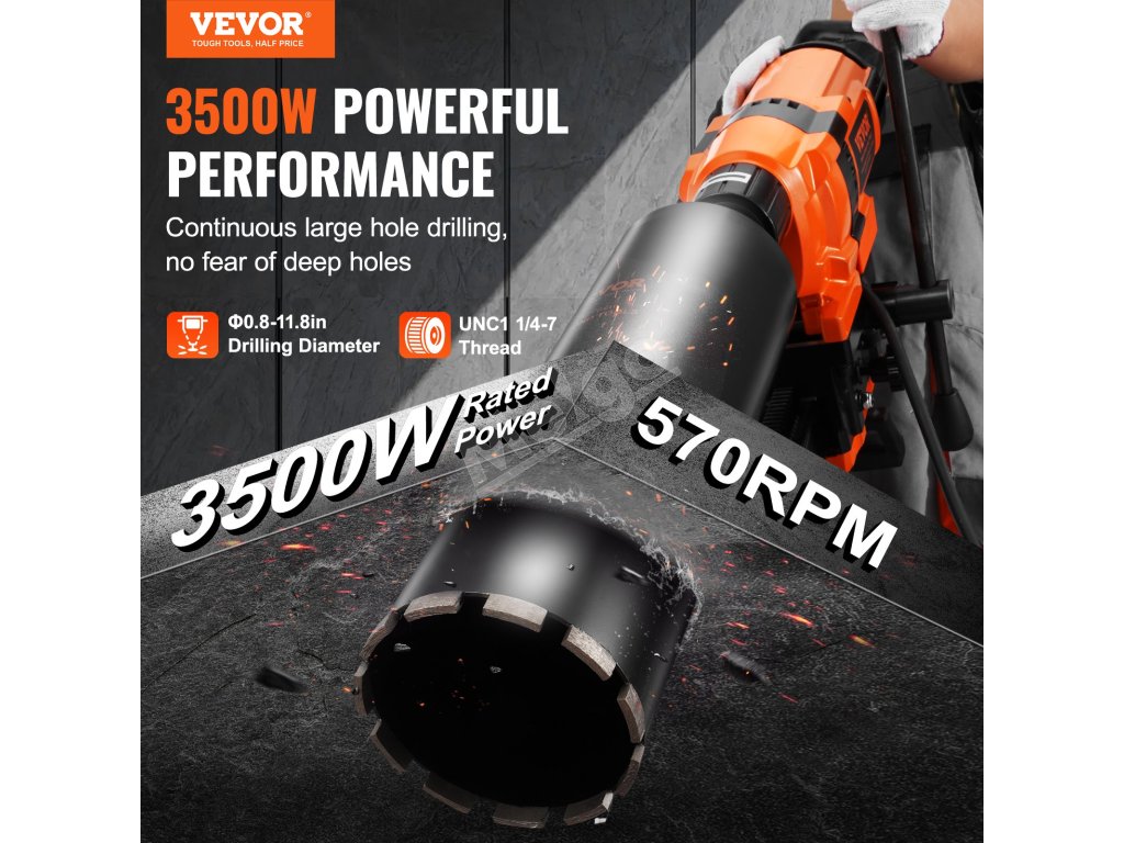 Táto jadrová vŕtačka je vybavená robustným 3500W motorom a poskytuje bezkonkurenčný výkon. Či už vŕtate do betónu, tehlových stien alebo kameňa, výkonný motor zaručuje rýchle a stabilné vŕtanie.