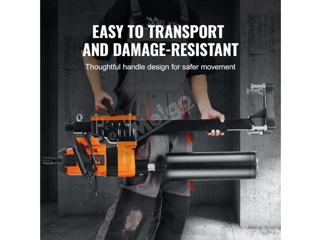 Ergonomická konštrukcia rukoväte uľahčuje používanie na staveniskách a zároveň zabezpečuje bezpečnosť a stabilitu jadrovej vŕtačky počas prepravy a skladovania. Účinne zabraňuje poškodeniu v dôsledku nárazov počas prepravy.