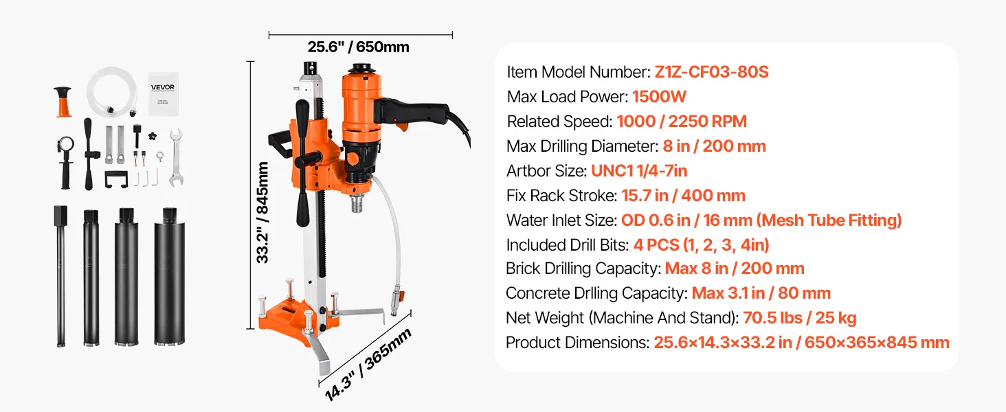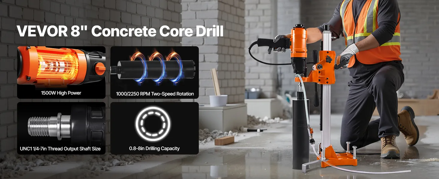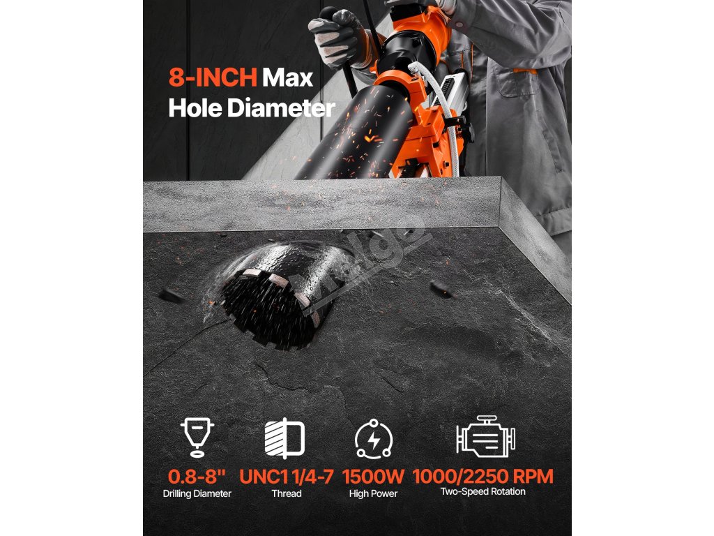 Táto jadrová vŕtačka má 1500W motor s nastaviteľnými dvoma rýchlosťami - 1000 otáčok za minútu/2250 otáčok za minútu - a ľahko si poradí s malými aj veľkými otvormi. S maximálnym priemerom vŕtania 8 palcov (200 mm) je stvorená na náročné projekty.