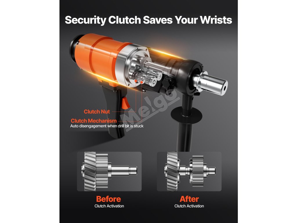 Zostaňte chránení počas práce. Zabudovaná bezpečnostná spojka jadrovej vŕtačky sa automaticky vypne, keď sa vrták zasekne, čím znižuje spätný ráz a pomáha predchádzať poraneniam zápästia.