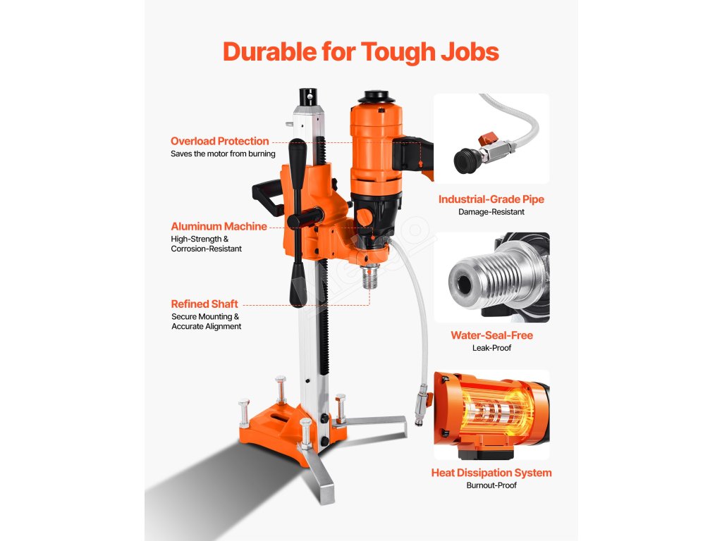 Pracujte s istotou. Diamantová jadrová vŕtačka sa pri preťažení automaticky vypne, aby nedošlo k vyhoreniu motora, čím udrží vaše zariadenie v bezpečí a s dlhou životnosťou.