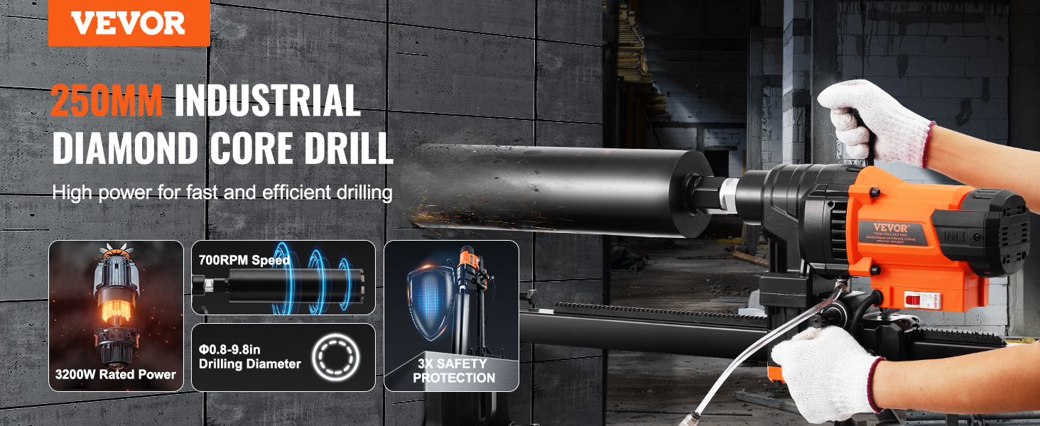 Táto jadrová vŕtačka je vybavená robustným 3200W motorom a poskytuje bezkonkurenčný výkon. Či už vŕtate do betónu, tehlových stien alebo kameňa, výkonný motor zaručuje rýchle a stabilné vŕtanie.