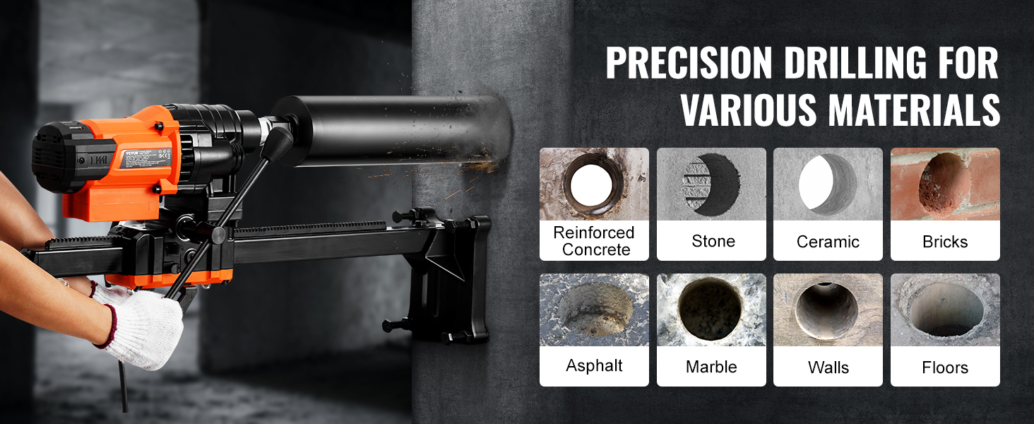 Naša jadrová vŕtačka dokáže efektívne prerezať rôzne materiály, ako sú železobetón, kameň, asfalt, mramor, keramika, steny, podlahy a tehly, čím spĺňa potreby rôznych stavebných projektov.