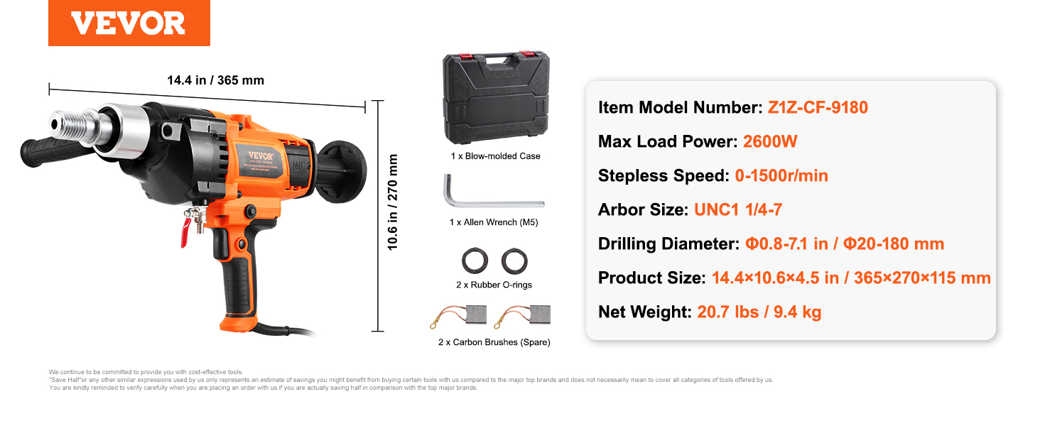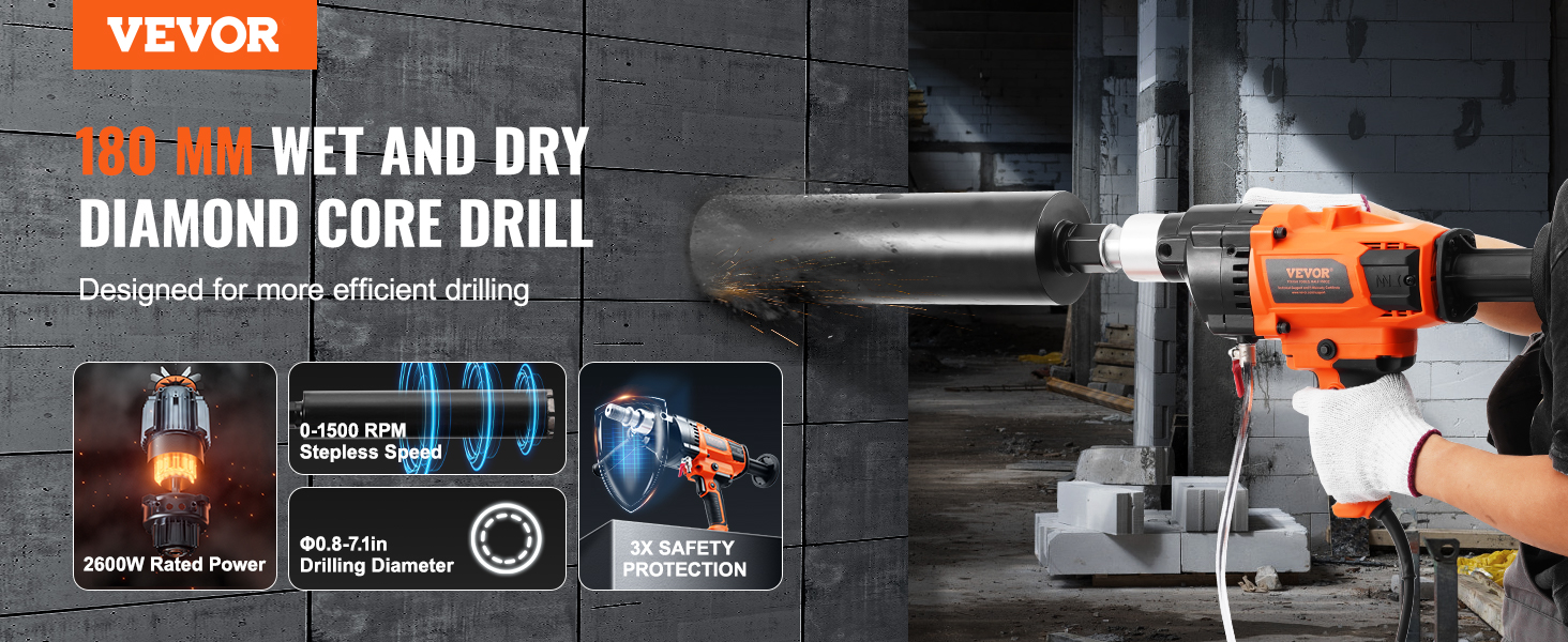 Motor jadrovej vŕtačky s výkonom 2600 W poskytuje dostatočný výkon na prácu s náročnými materiálmi, vďaka čomu je proces vŕtania rýchlejší a stabilnejší. Nastaviteľné otáčky umožňujú jemné doladenie rýchlosti podľa rôznych materiálov a požiadaviek projektu, čím sa zabezpečí presná kontrola.