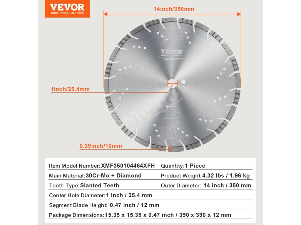 Diamantový kotúč 350mm/14inch 10mm segmenty otvor 25,4mm mokro/sucho