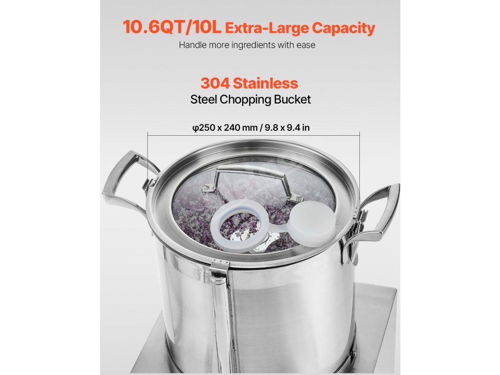 Náš kuchynský robot má superveľkú kapacitu 10,6 QT / 10 l, výkonný motor s príkonom 1100 W a ostré nože v tvare písmena S, ktoré vám umožnia ľahko nasekať rôzne prísady, od zeleniny až po ovocie, v mise jediným stlačením. Urobte si z prípravy jedla hračku s naším sekáčikom!