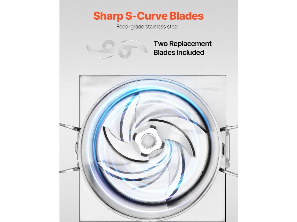 Vďaka našim odolným a ostrým zakriveným nožom v tvare písmena S a priemernej rýchlosti otáčania 1400 ot/min môžete rýchlo nasekať ingrediencie, čím ušetríte drahocenný čas na prípravu. Rozlúčte sa so zdĺhavou prípravou jedla a pozdravte pohodlie.