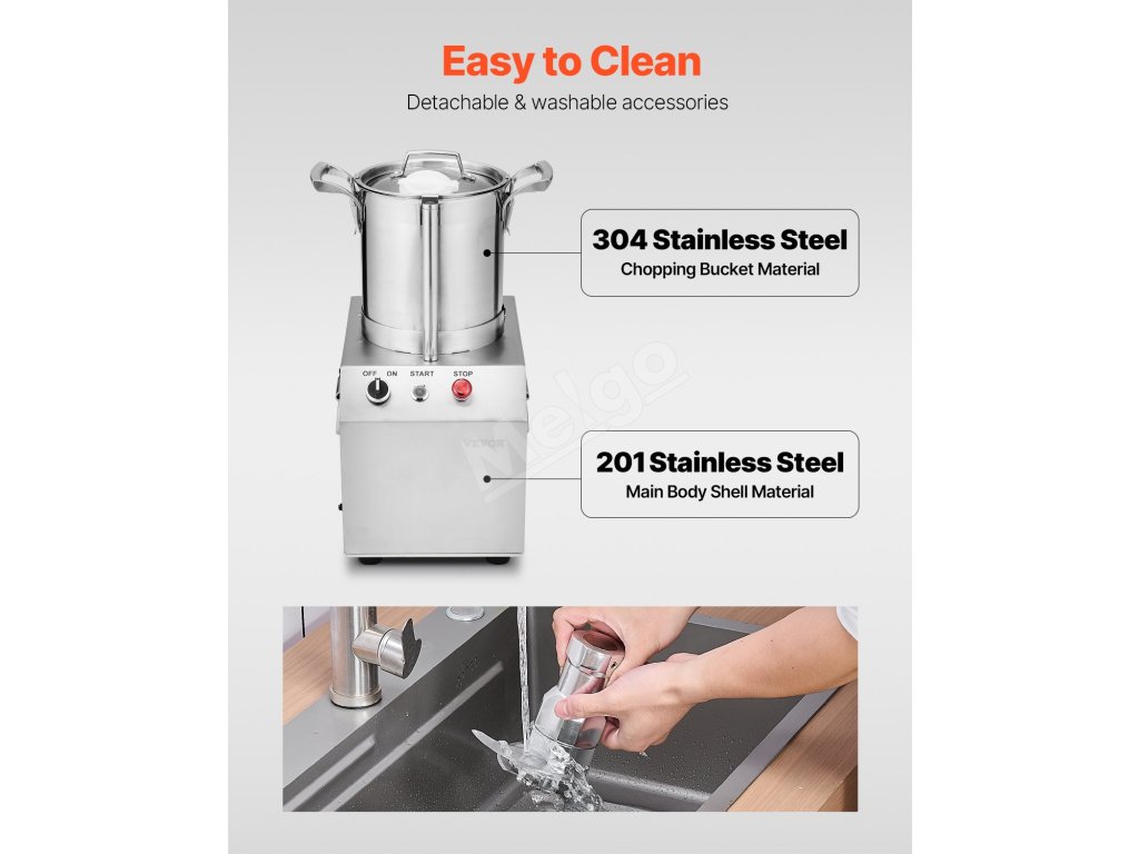 Náš kuchynský robot má celonerezové telo s ľahko odnímateľnými a umývateľnými komponentmi na údržbu bez námahy. Môžete sa spoľahnúť na kvalitu použitých materiálov, ktoré zabezpečia, že vaše jedlo zostane bezpečné a chutné.