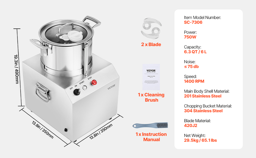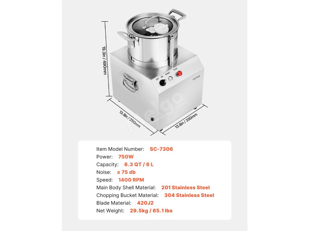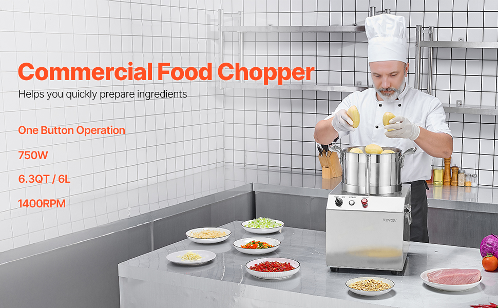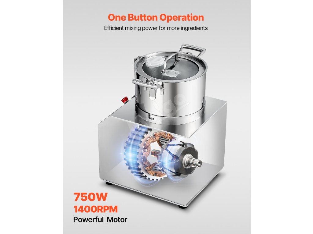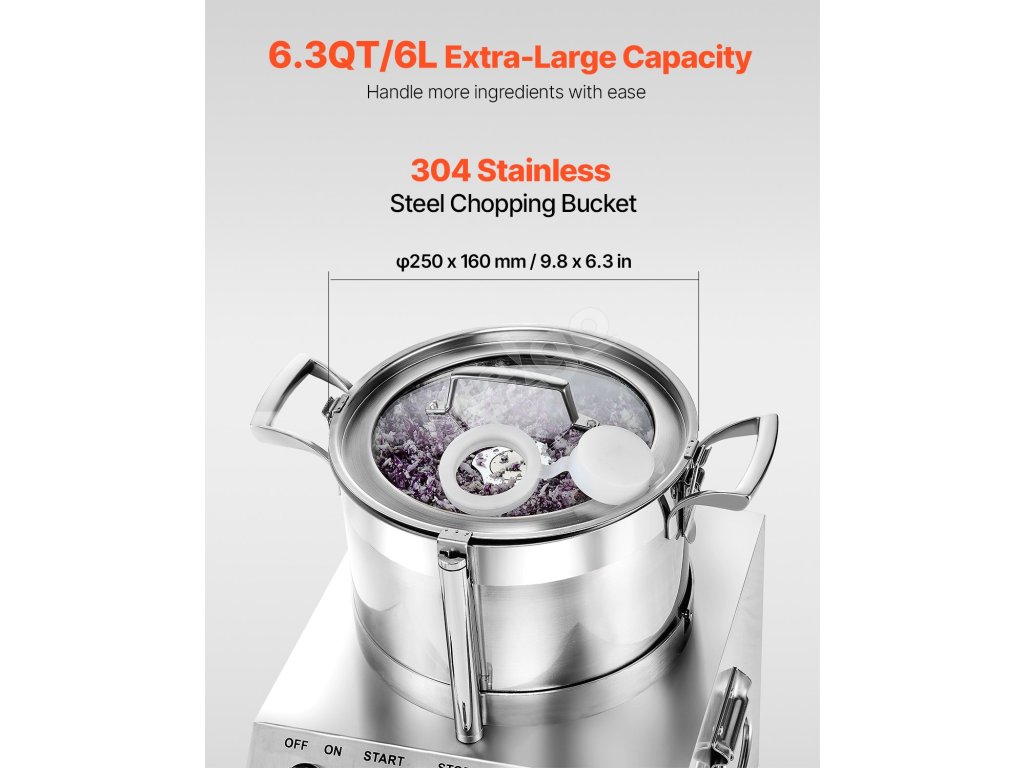 Náš kuchynský robot má superveľkú kapacitu 6,3 QT / 6 l, výkonný motor s príkonom 750 W a ostré nože v tvare písmena S, ktoré vám umožnia ľahko nasekať rôzne prísady, od zeleniny až po ovocie, v mise jediným stlačením. Urobte si z prípravy jedla hračku s naším sekáčikom!