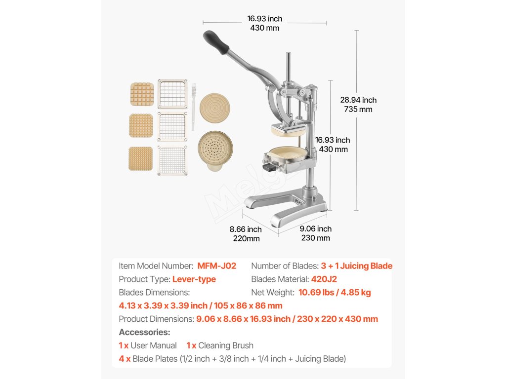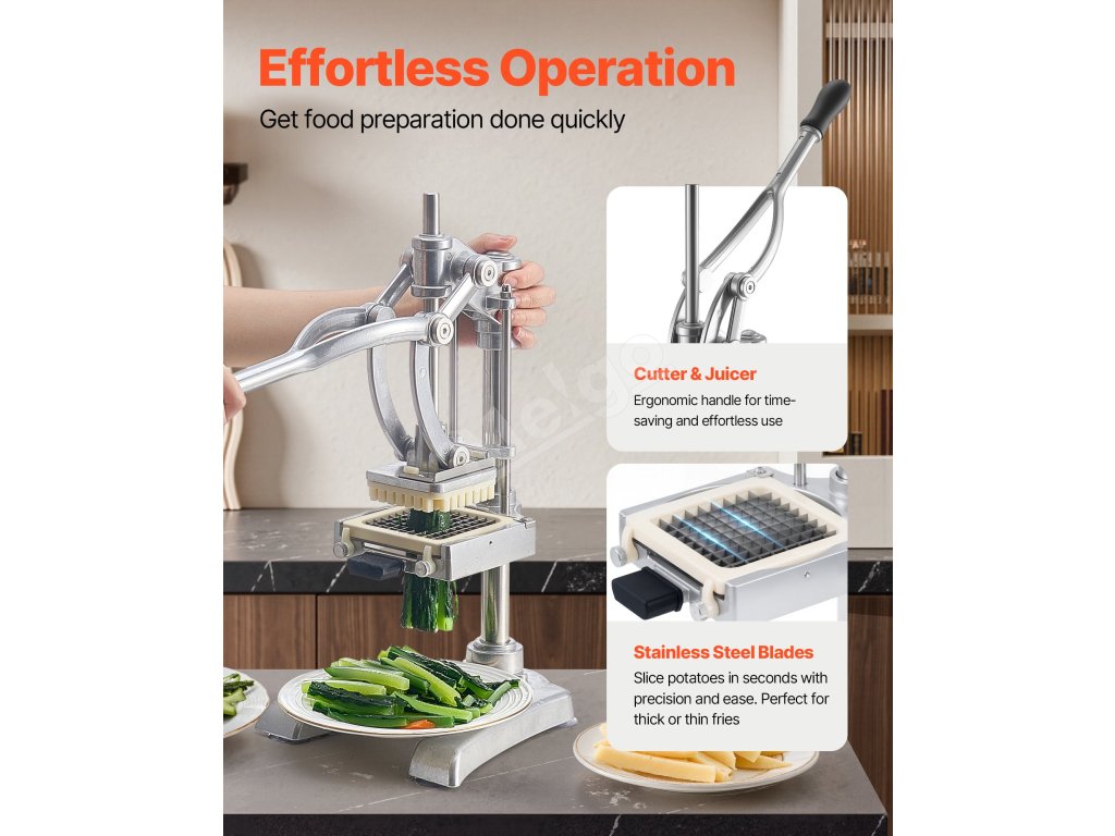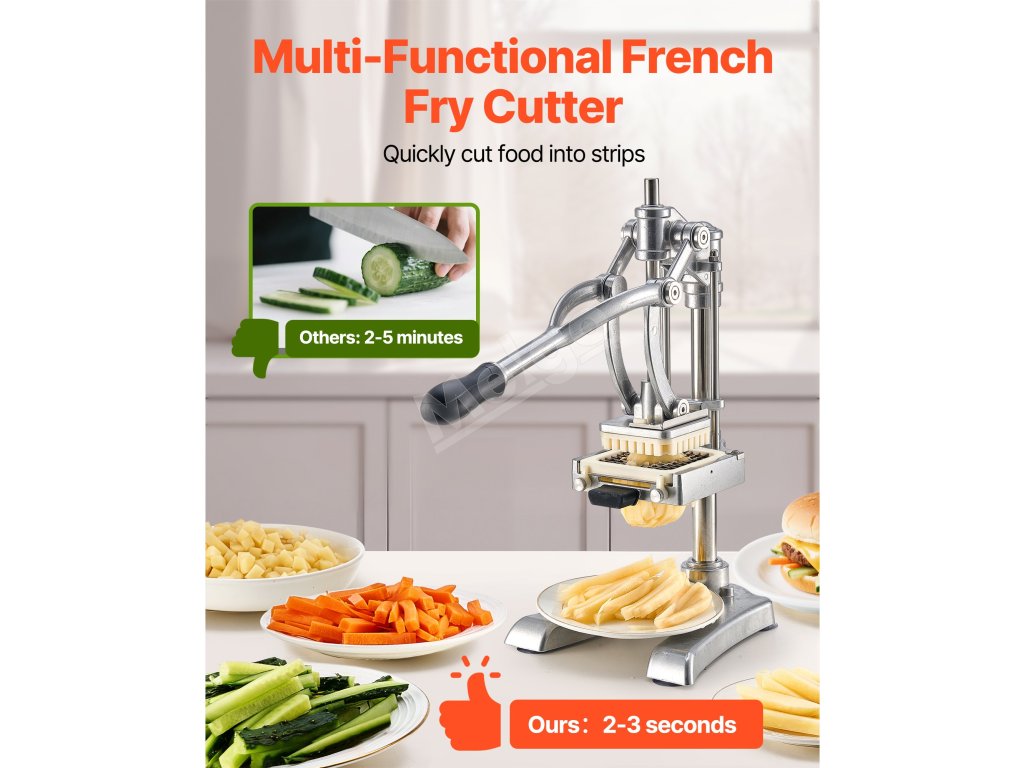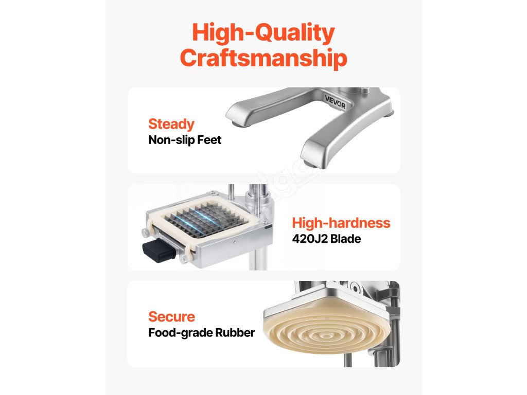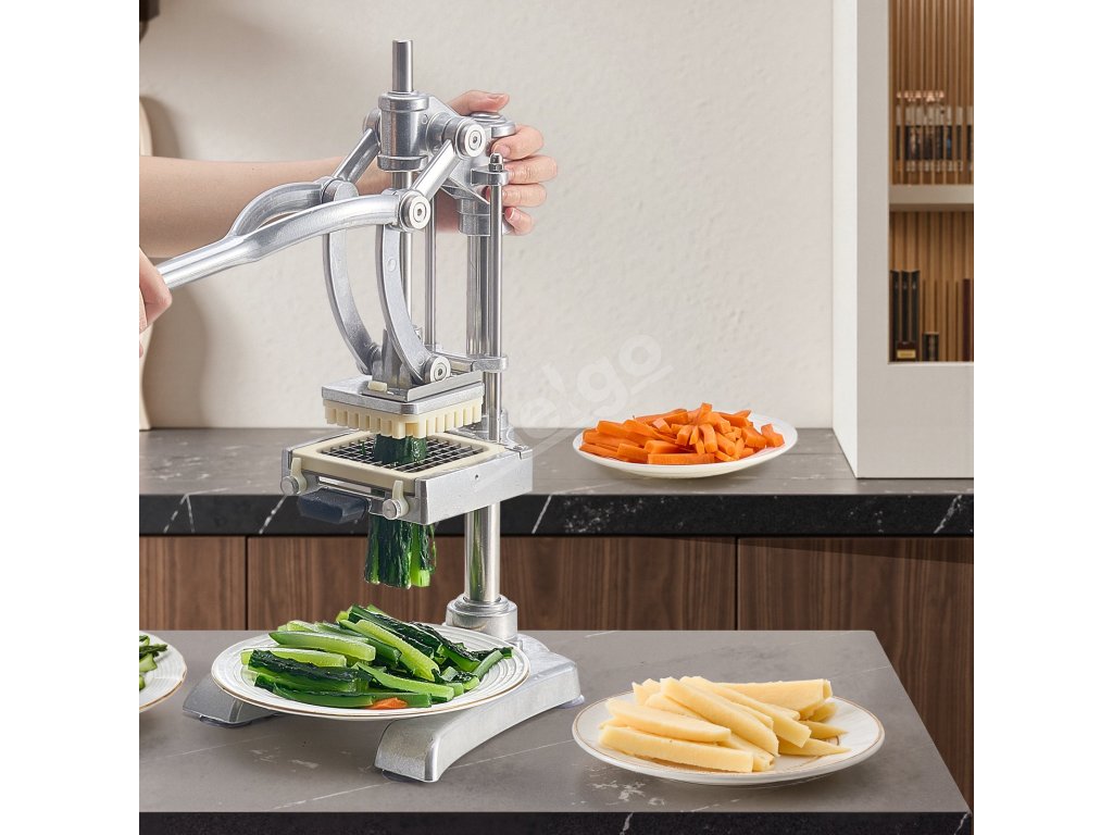Tento krájač na hranolky je vyrobený z vysokokvalitnej nehrdzavejúcej ocele a hliníkovej zliatiny a má robustnú konštrukciu, ktorá zaručuje dlhodobú životnosť. Ľahko sa ovláda a hojne sa používa v reštauráciách rýchleho občerstvenia, kaviarňach a domácich kuchyniach, vďaka čomu je príprava jedál rýchla a efektívna.