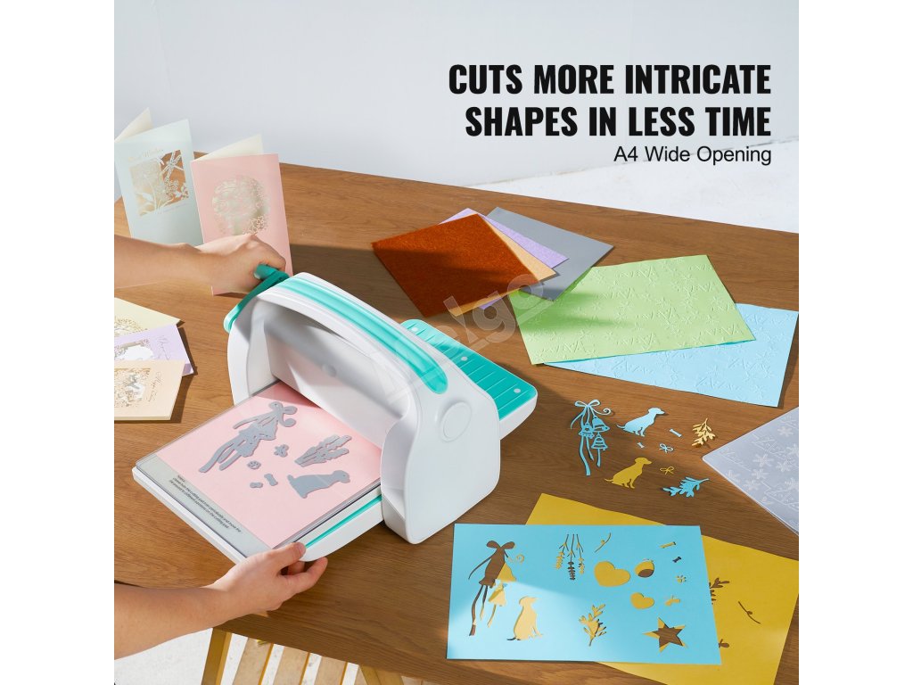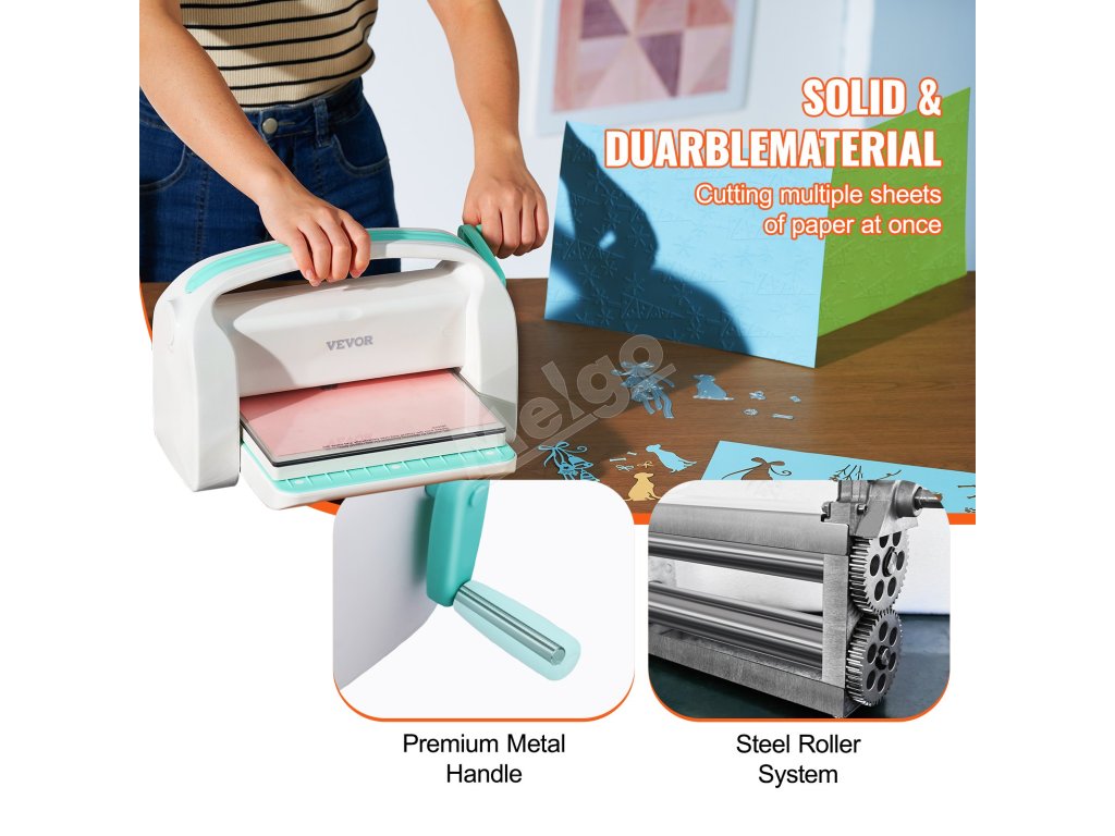 Ručný embosovací stroj VEVOR na vyrezávanie je ideálny na širokú škálu projektov. Dokáže rezať a embosovať rôzne materiály, napríklad papier, plsť, kožu, textílie a kovové dosky. Vďaka tomu ho možno využiť na výrobu šperkov, vlasových doplnkov a ručných prác z papiera.