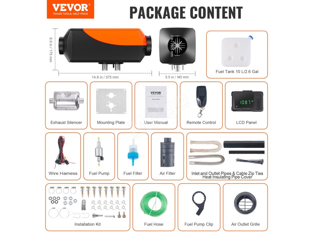 Už nemusíte znášať nepohodlie pri jazde v mraze. Naftové kúrenie VEVOR je dokonalým riešením pre vaše auto, karavan, nákladné vozidlo a ďalšie. Rýchlo dodáva stály prúd teplého vzduchu, čím znižuje chladnú atmosféru vo vašom vozidle a poskytuje príjemné cestovanie.
