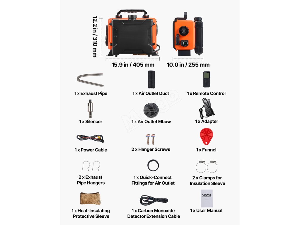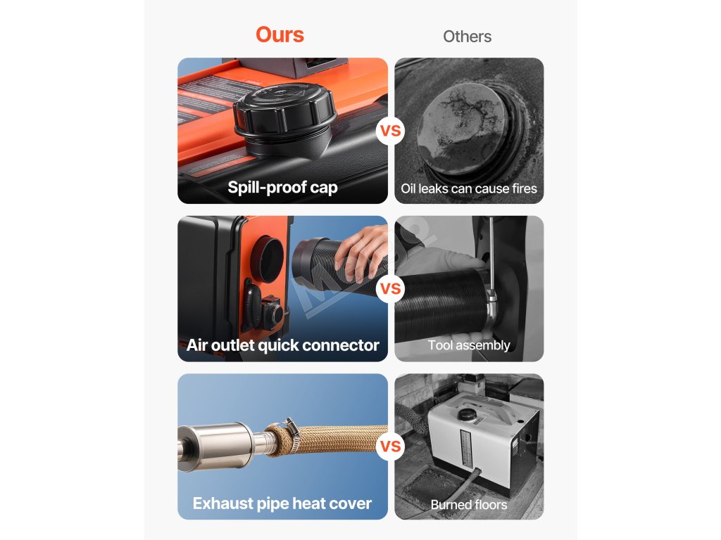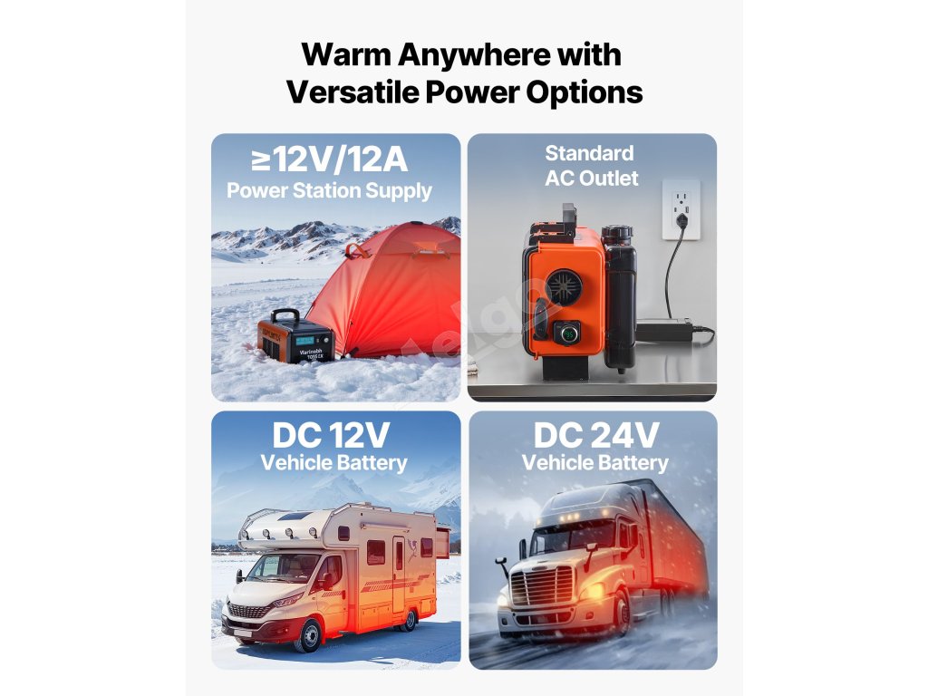 Tento prenosný naftový ohrievač s výkonom 8 kW sa pripája k napájaniu vozidla a obsahuje adaptér pre napájacie stanice alebo napájanie z domácnosti striedavým prúdom. Poskytuje rýchle a účinné vykurovanie pre stany, rybárčenie na ľade, obytné vozidlá, nákladné vozidlá, SUV, dodávky a ďalšie. Je navrhnutý tak, aby zvládol chladné prostredie a rýchlo vyhrieva veľké priestory.