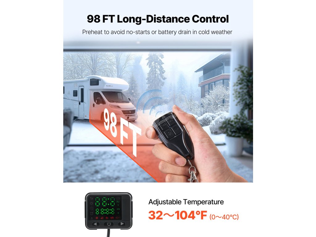 Naše parkovacie naftové kúrenie sa dodáva s diaľkovým ovládaním s dĺžkou 98 stôp, ktoré vám umožní upraviť nastavenia a užívať si teplo na diaľku. Ovládajte svoj komfort bez toho, aby ste museli opustiť svoje miesto, a LCD displej zaručuje prehľadné a používateľsky prívetivé rozhranie.