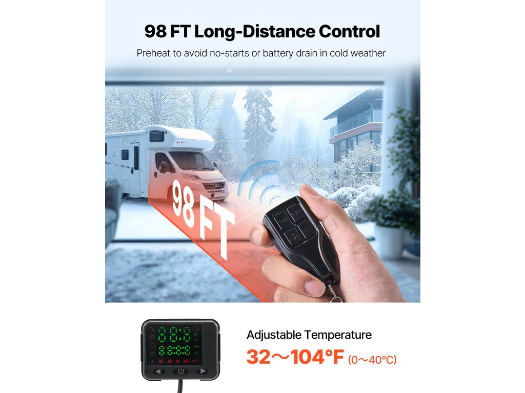 Naše parkovacie naftové kúrenie sa dodáva s diaľkovým ovládaním s dĺžkou 98 stôp, ktoré vám umožní upraviť nastavenia a užívať si teplo na diaľku. Ovládajte svoj komfort bez toho, aby ste museli opustiť svoje miesto, a LCD displej zaručuje prehľadné a používateľsky prívetivé rozhranie.