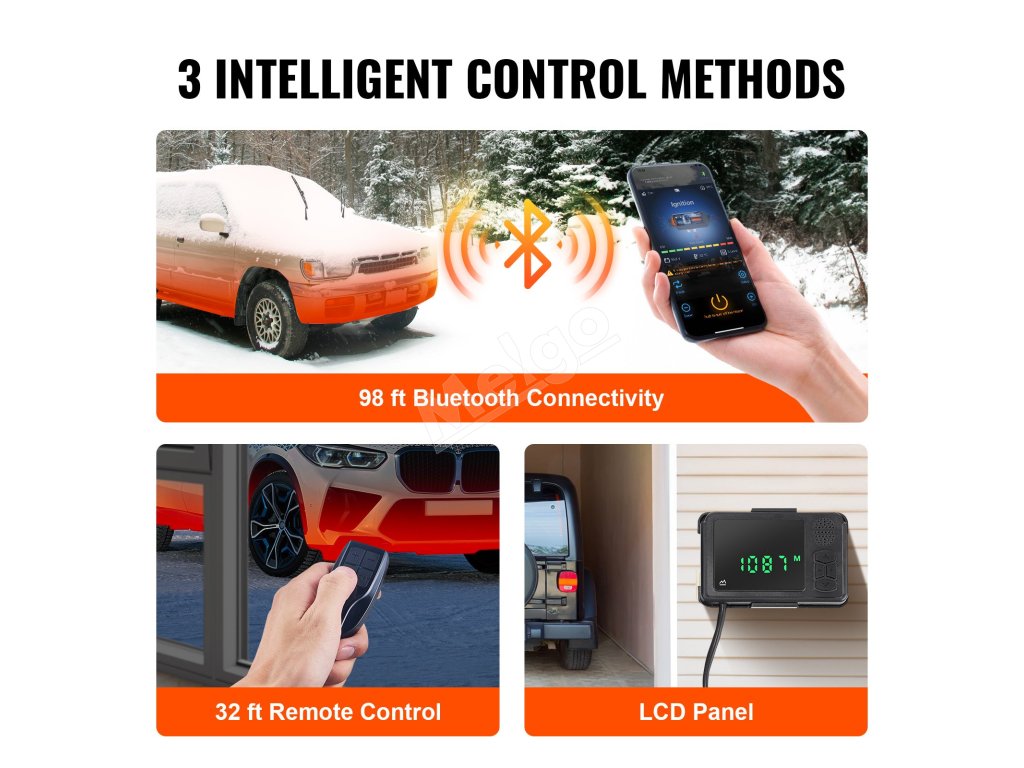 Náš modernizovaný naftový ohrievač má teraz ovládanie cez Bluetooth pre väčšie pohodlie. Stiahnite si aplikáciu a predhrejte ohrievač zo vzdialenosti až 98 stôp/30 m alebo použite priložený diaľkový ovládač a displej LCD s dosahom 32 stôp/10 m