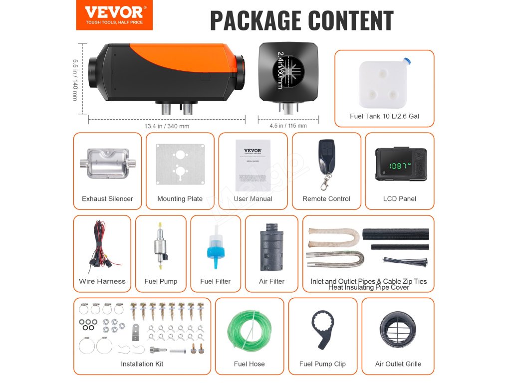 Už nemusíte znášať nepohodlie pri jazde v mraze. Naftové kúrenie VEVOR je dokonalým riešením pre vaše auto, karavan, nákladné vozidlo a ďalšie. Rýchlo dodáva stály prúd teplého vzduchu, čím eliminuje chladnú atmosféru vo vašom vozidle a poskytuje príjemné cestovanie.