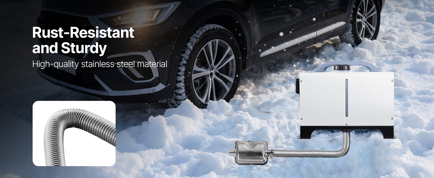Výfukové potrubie parkovacieho naftového ohrievača je vyrobené z vysokokvalitnej nehrdzavejúcej ocele so silnou toleranciou voči poveternostným vplyvom. Jej vlastnosti odolné voči korózii a hrdzi zabezpečujú stabilný výfukový výkon a dlhodobú spoľahlivosť pre rôzne zostavy naftového ohrievača.