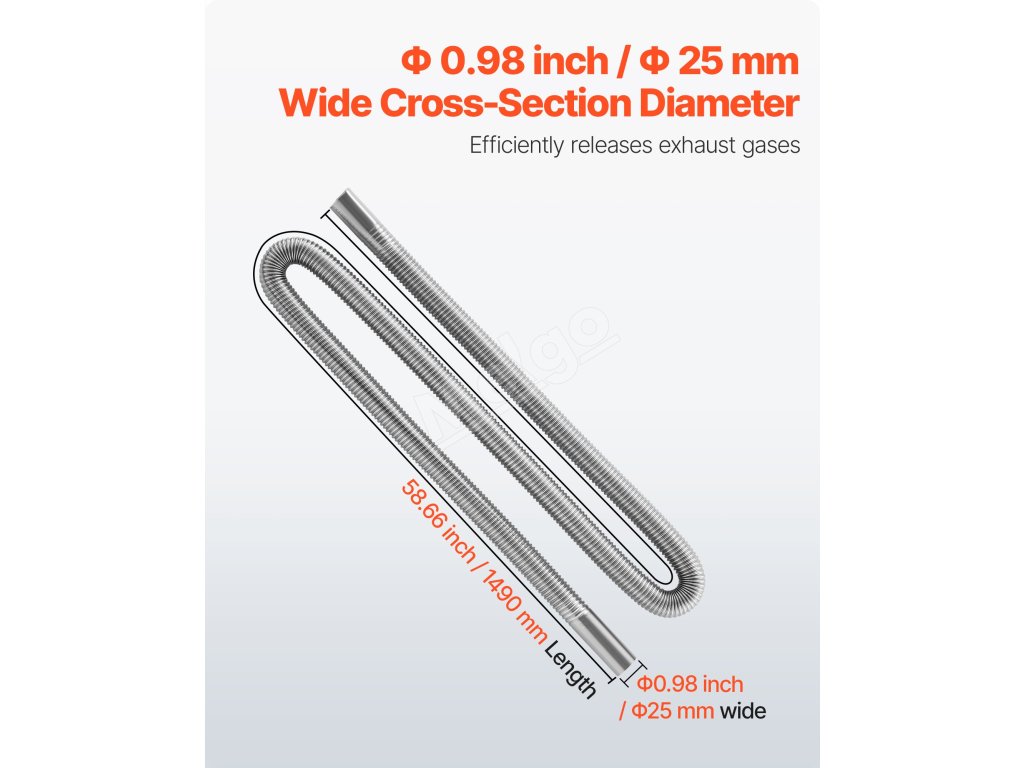 Táto výfuková hadica s priemerom 58,7 palca / 1490 mm je vyrobená z nehrdzavejúcej ocele pre trvalú odolnosť. Ponúka silnú odolnosť proti korózii a odolnosť voči poveternostným vplyvom, je vhodná pre väčšinu 2KW, 5KW a 8KW dieselových ohrievačov a je navrhnutá na rýchlu inštaláciu a spoľahlivé používanie.