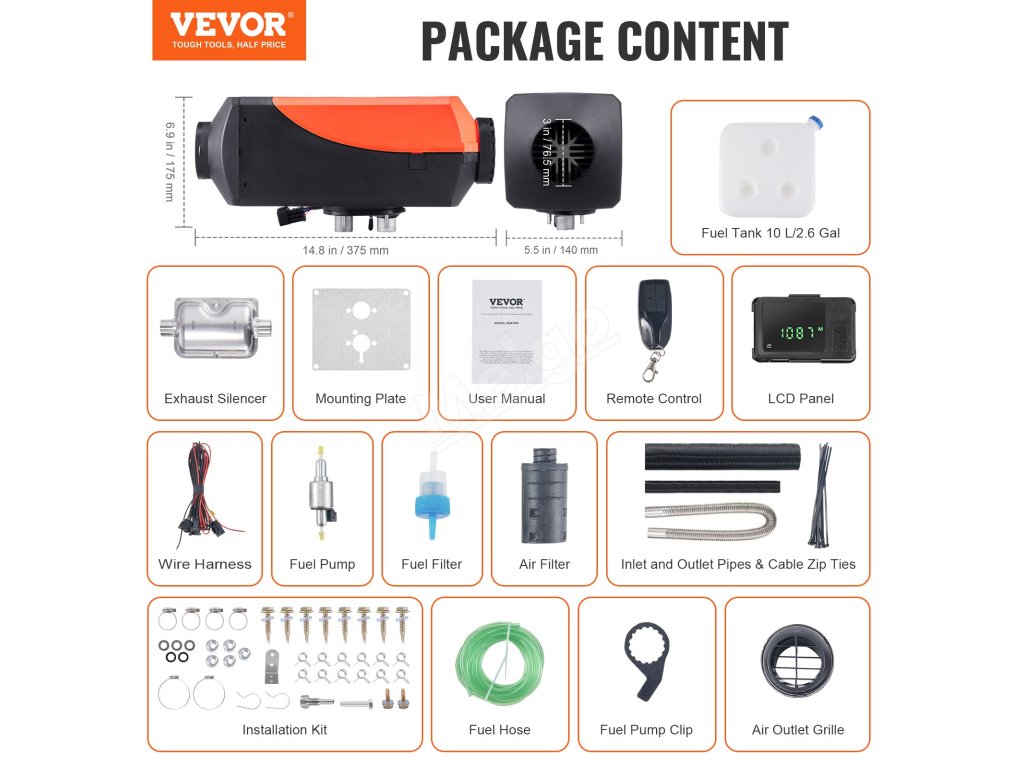Dieselový ohrievač 12V 8 kW s diaľk. a lcd, automat. komp. nadm. výšky